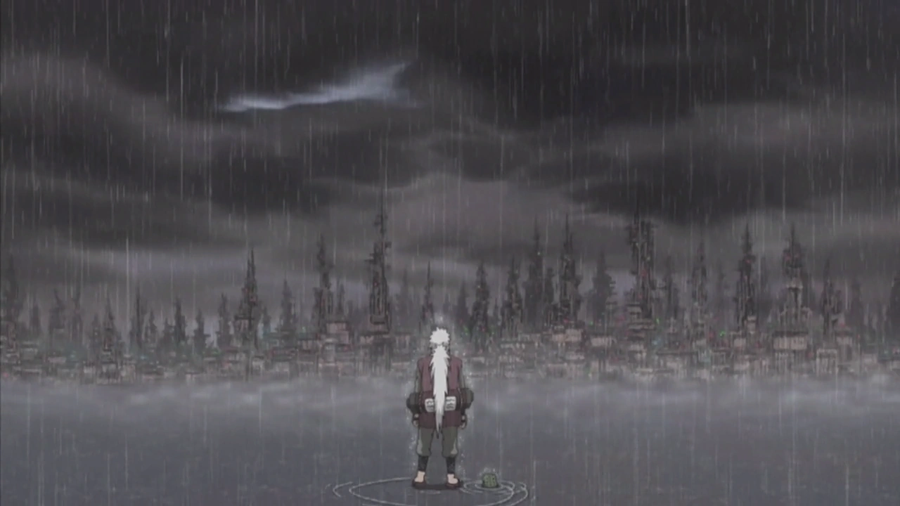 Amegakure (雨隠れの里, Amegakure no Sato; Literally meaning "Village Hidden in the Rain") is a small, yet highly industrialized hidden village located in the Land of Rain. Its architecture is composed of several metallic skyscrapers with rowed ducts connected to them and many power lines surrounding. A number of smaller villages also surround Amegakure. As its name suggests, it rains almost constantly due to a storm above the village.